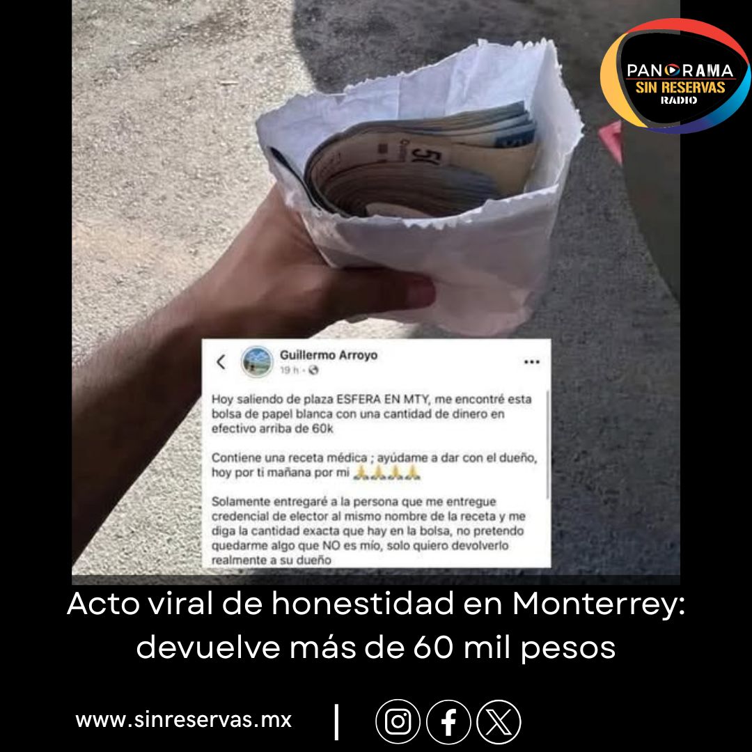 Un ejemplo de honestidad se viralizó en redes sociales luego de que Guillermo Arroyo encontrara una bolsa con más de 60 mil pesos en efectivo al salir de Plaza Esfera, en Monterrey, y decidiera localizar al propietario para devolverla.