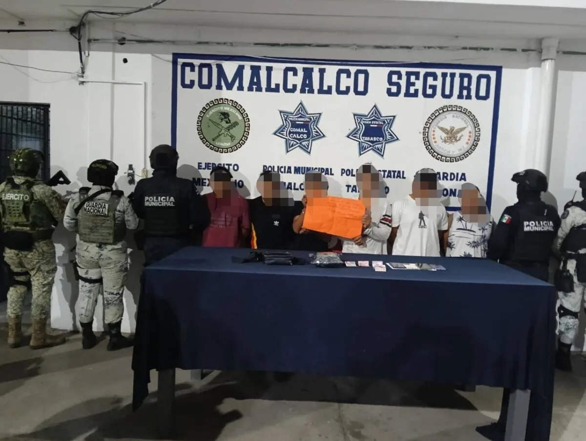 Fue en la calle 27 de Febrero, a la altura del parque Benito Juárez, de Villa Aldama, que los elementos de Sedena, Guardia Nacional y de las policías estatal y de Comalcalco, detectaron a los sujetos por conducirse de forma sospechosa.