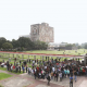 Pese a la lluvia y los fuertes vientos, la multitud recorrió el emblemático puente —de más de un kilómetro de largo y símbolo arquitectónico de la ciudad— mientras cientos de agentes de policía vigilaban la movilización.