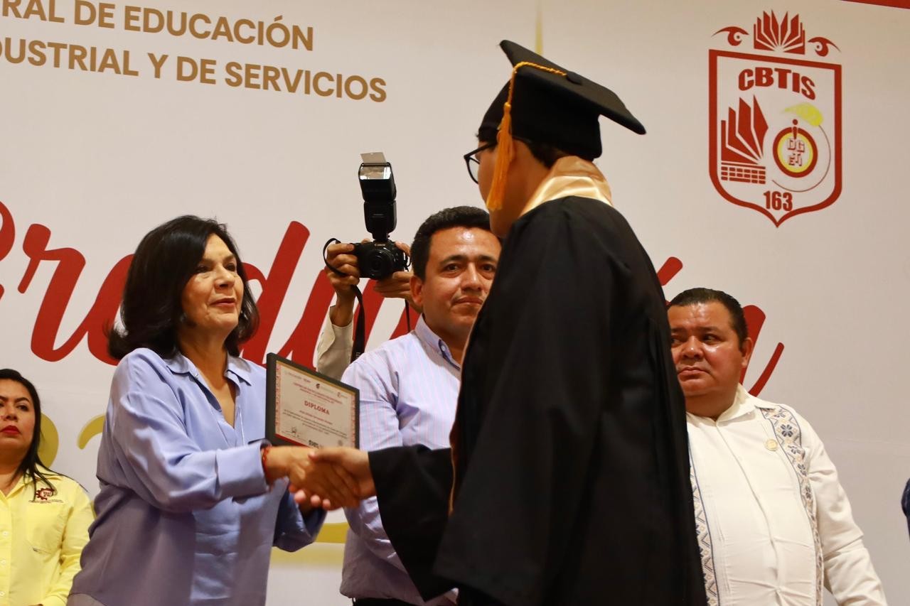 La alcaldesa de Centro, Yolanda Osuna Huerta, participó en la ceremonia de graduación del CBTIS 163, Generación 2022–2025.