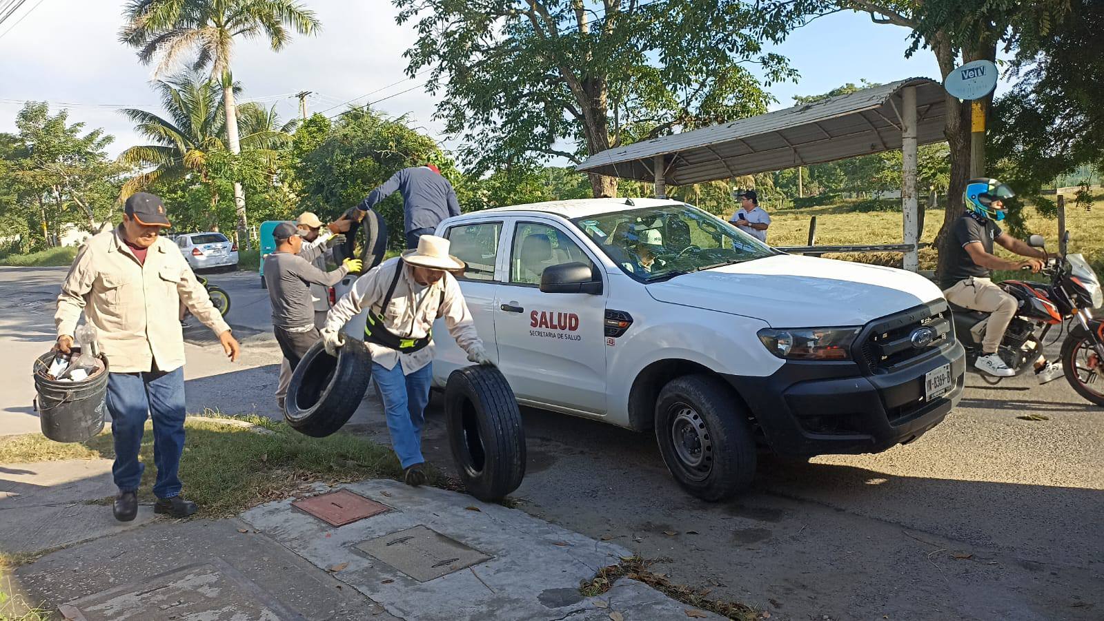 La estrategia aplicada es ir casa por casa para eliminar criaderos de mosquitos en cubetas, llantas y macetas, todo con el apoyo de personal de la Jurisdicción Sanitaria y de las direcciones municipales de Protección Civil y Obras Públicas.