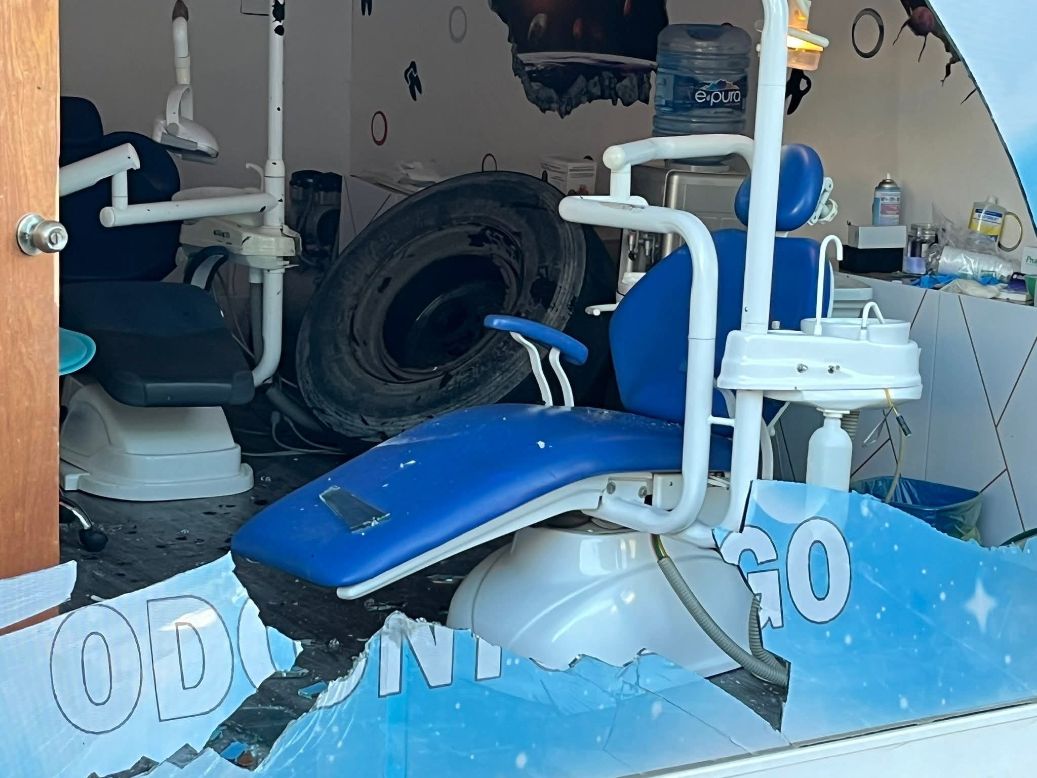 Llanta de camión se desprende y termina dentro de un consultorio dental en Veracruz