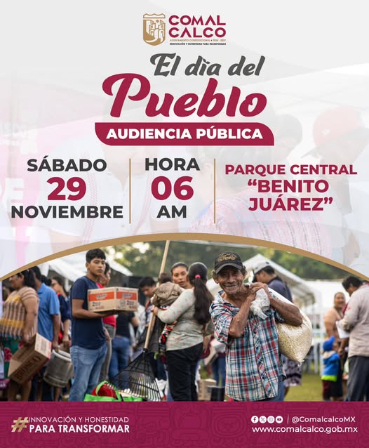 El Ayuntamiento de Comalcalco anunció que este 29 de noviembre se realizará en la cabecera municipal una nueva edición de El Día del Pueblo, jornada en la que las y los ciudadanos recibirán atención directa del alcalde Ovidio Peralta Suárez y de las diferentes dependencias municipales.