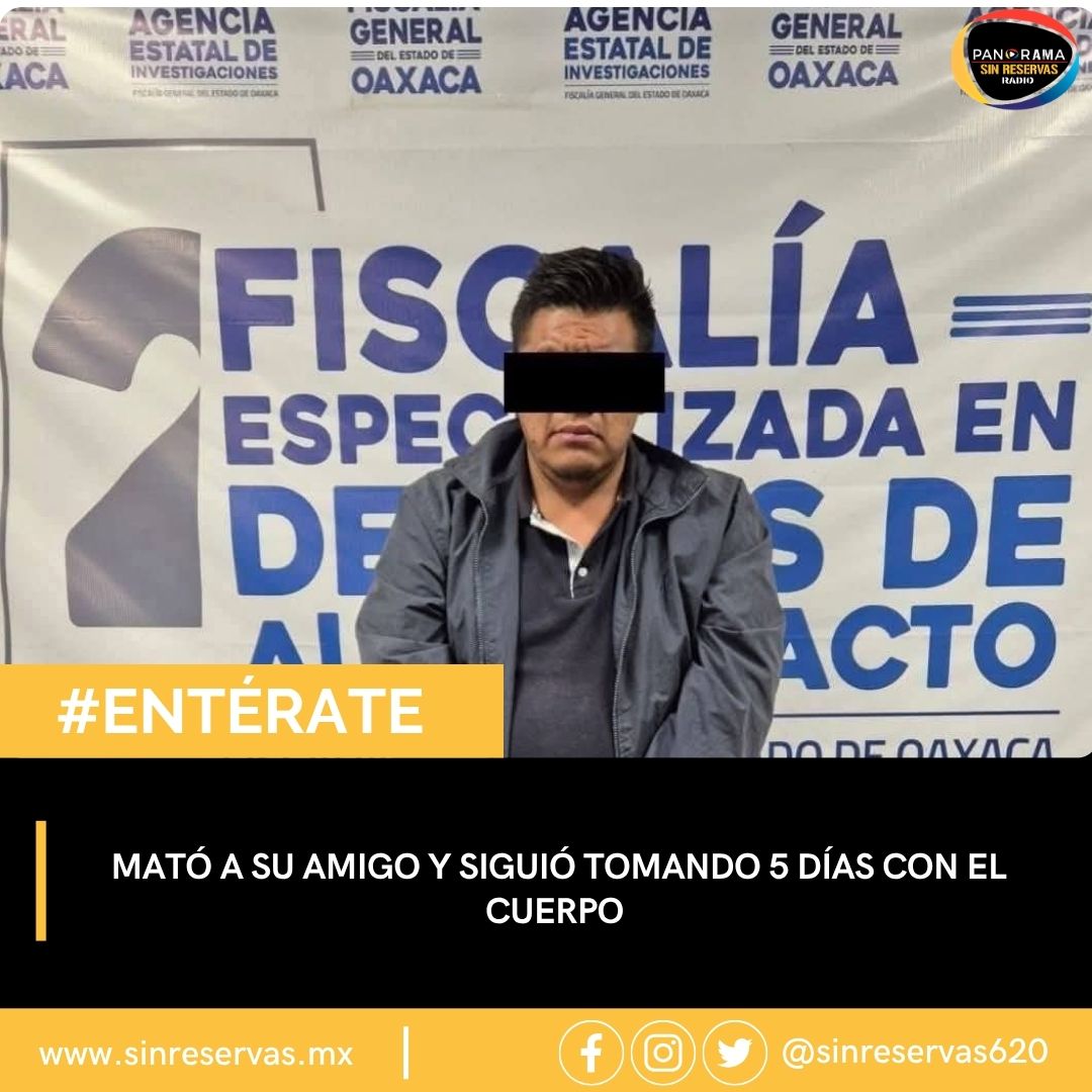 Un mecánico identificado como Noé Gadiel “N”, alias “El Taz”, fue detenido tras asesinar a su “amigo” Saúl “N” durante una parranda y convivir con su cuerpo durante cinco días sin mostrar remordimiento alguno, en Oaxaca.
