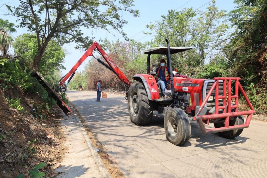 Yolanda Osuna Huerta dio a conocer que este martes se realizan trabajos de limpieza con la máquina desmalezadora en ambas márgenes del camino principal de la ranchería Estanzuela 1.ª sección, con el objetivo de mejorar la visibilidad y contribuir a la seguridad de peatones y automovilistas.