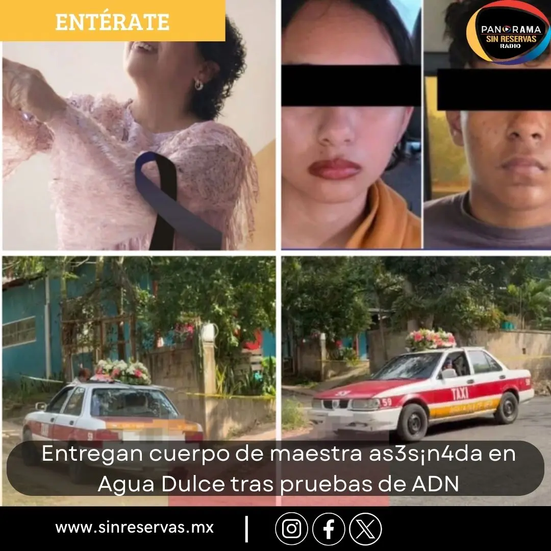 Tras concluir los estudios de ADN para su plena identificación, el cuerpo de la maestra Martha Pérez fue entregado a sus familiares en Agua Dulce, luego de permanecer bajo resguardo de las autoridades como parte de las diligencias de investigación.