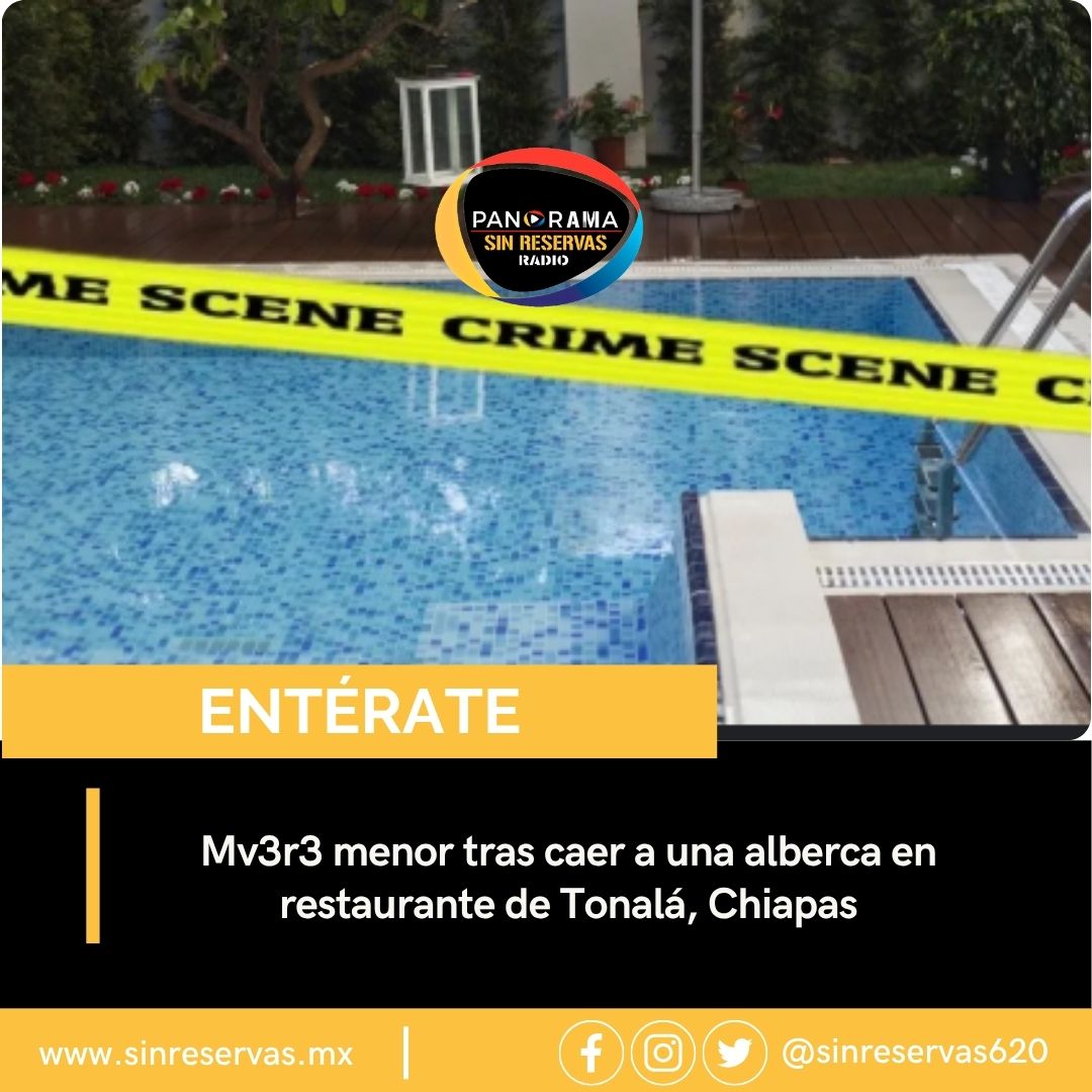 Un lamentable accidente ocurrió la mañana de este martes en un restaurante ubicado en la colonia Hermanos Serdán, en el municipio de Tonalá, Chiapas, donde un niño de tres años perdió la vida tras caer a una alberca.