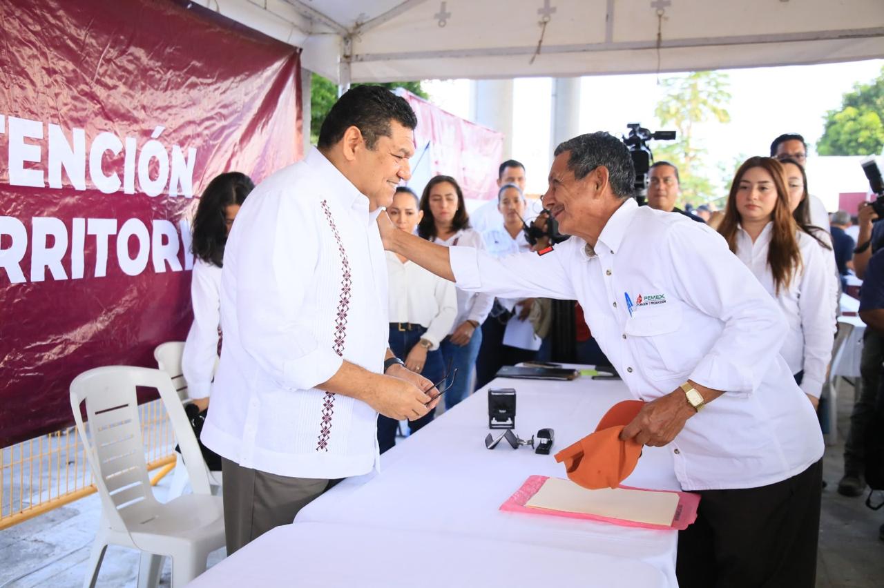 En una intensa jornada y en compañía de la presidenta municipal de Huimanguillo, Mari Luz Velázquez Jiménez, y servidores públicos estatales y federales, anunció el inicio de la rehabilitación del camino a San Manuel. “Es un compromiso que me hago ante todos ustedes. En abril arrancaremos la rehabilitación del camino para que esté bien”, dijo en el encuentro con el pueblo que festejó el anuncio.