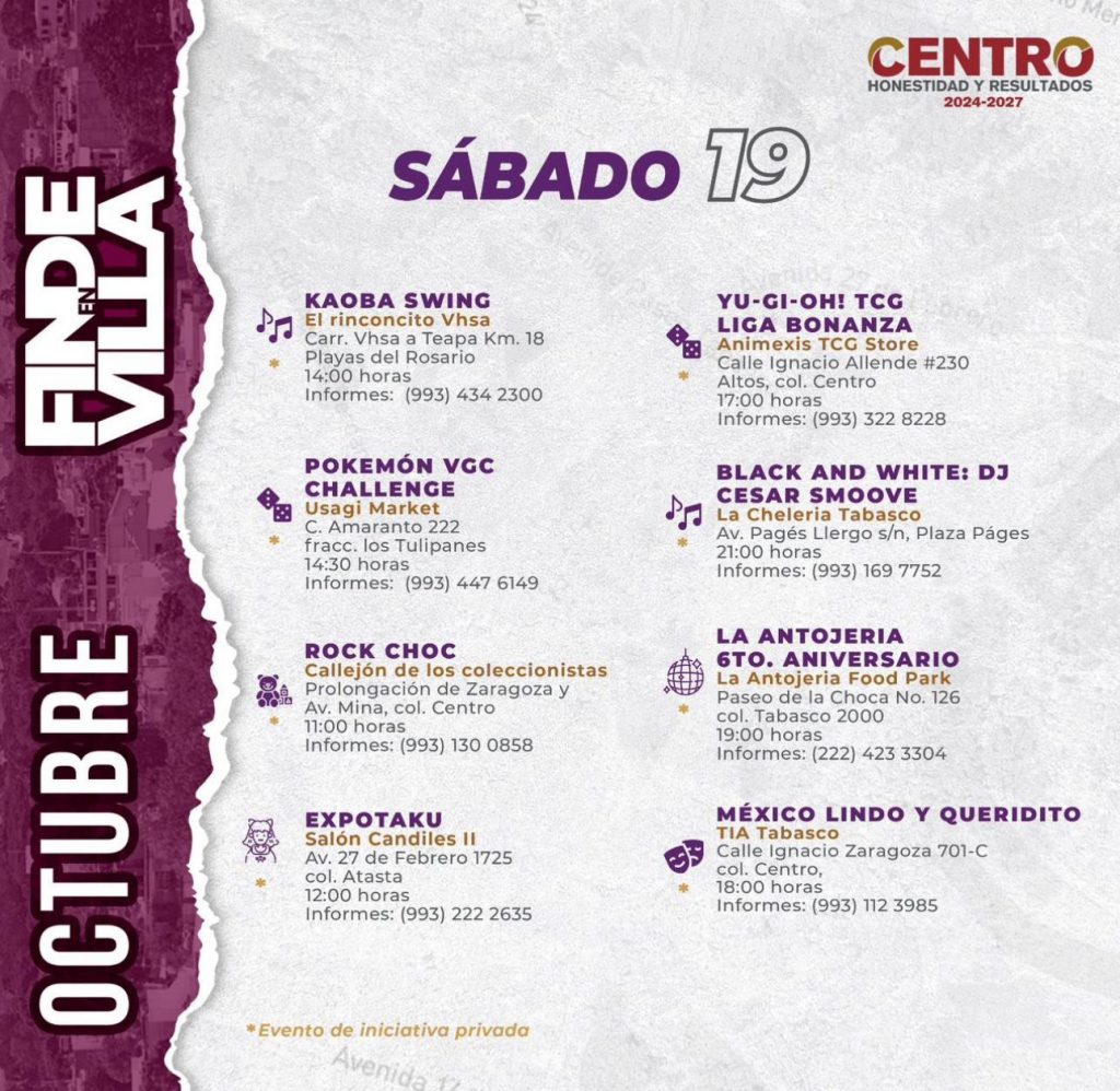 No te pierdas los eventos que el Gobierno de Centro tiene para ti, échale un ojo a la guía FINDE EN VILLA