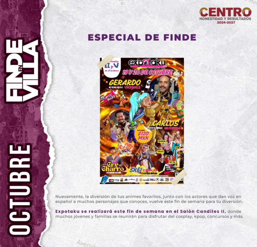 La alcaldía de Centro ha lanzado la guía “FINDE EN VILLA”, invitando a los habitantes a participar en una serie de eventos familiares programados para este fin de semana. Con una amplia gama de actividades, la ciudad se prepara para recibir a todos los gustos, destacando el inicio de las celebraciones del Día de Muertos, que rinden homenaje a esta emblemática festividad mexicana. Las calles se adornarán con altares, desfiles y decoraciones vibrantes, acompañadas de música tradicional y sabores auténticos, ofreciendo una experiencia cultural rica y significativa.