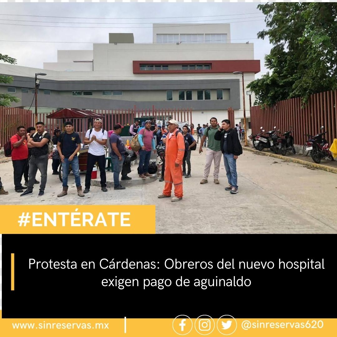 Cárdenas, Tabasco.— Empleados encargados de la edificación del nuevo Hospital General de Cárdenas se manifestaron pacíficamente este lunes para denunciar el impago de su aguinaldo y señalar diversas anomalías en sus condiciones de trabajo.