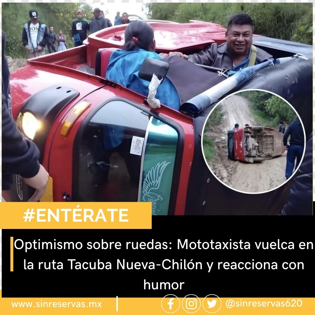 Un peculiar incidente se registró en el tramo carretero que conecta Tacuba Nueva con Chilón, donde el pavimento mojado y las constantes lluvias provocaron la volcadura de un mototaxi. Sin embargo, lo que pudo ser una jornada de angustia se transformó en una lección de resiliencia.