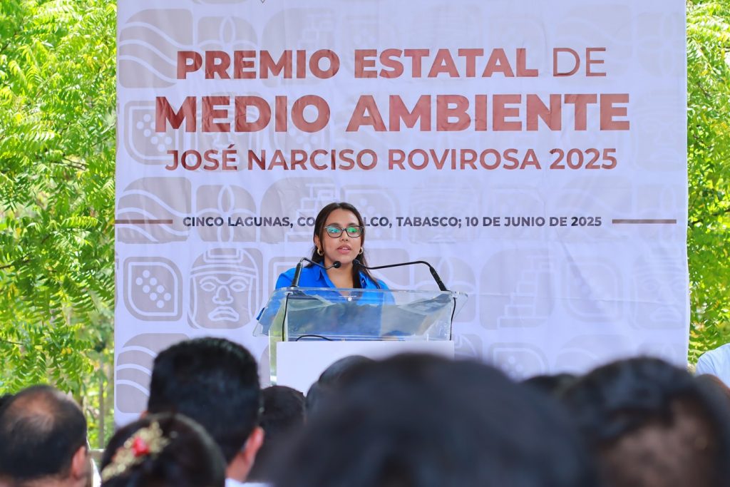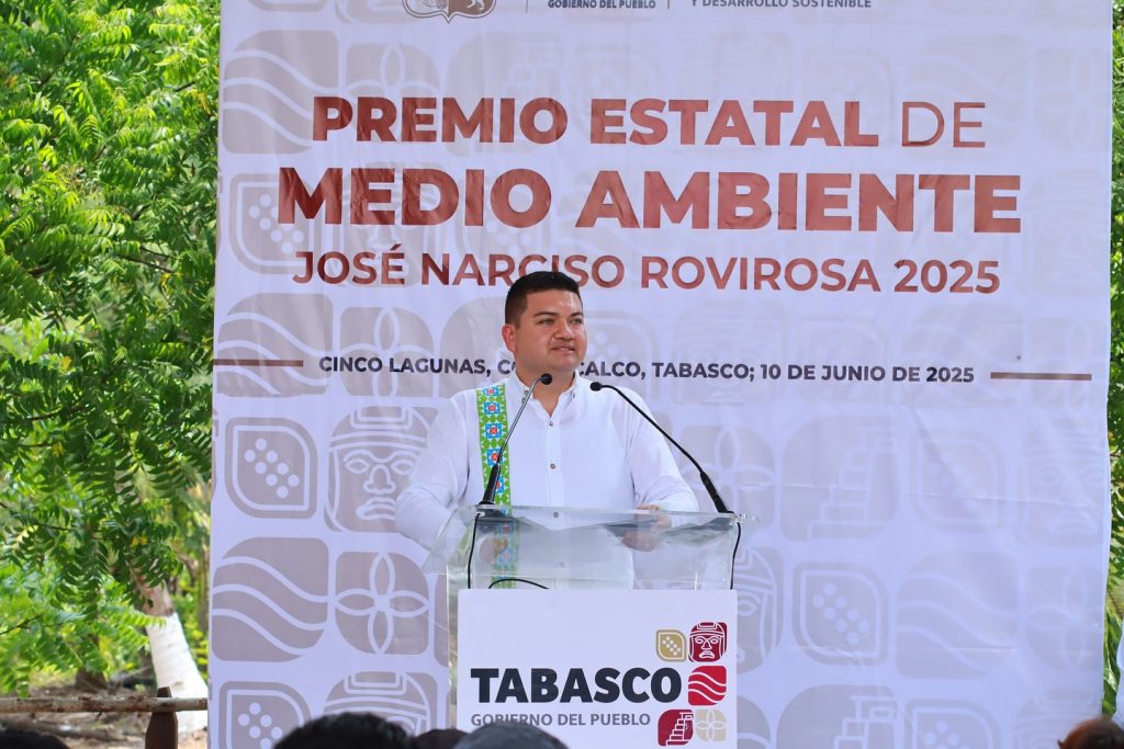 Esta mañana, el presidente municipal, Ovidio Peralta Suárez, asistió a Cinco Lagunas, donde acompañó al gobernador Javier May Rodríguez en la entrega del Premio Estatal del Medio Ambiente “José Narciso Rovirosa”.