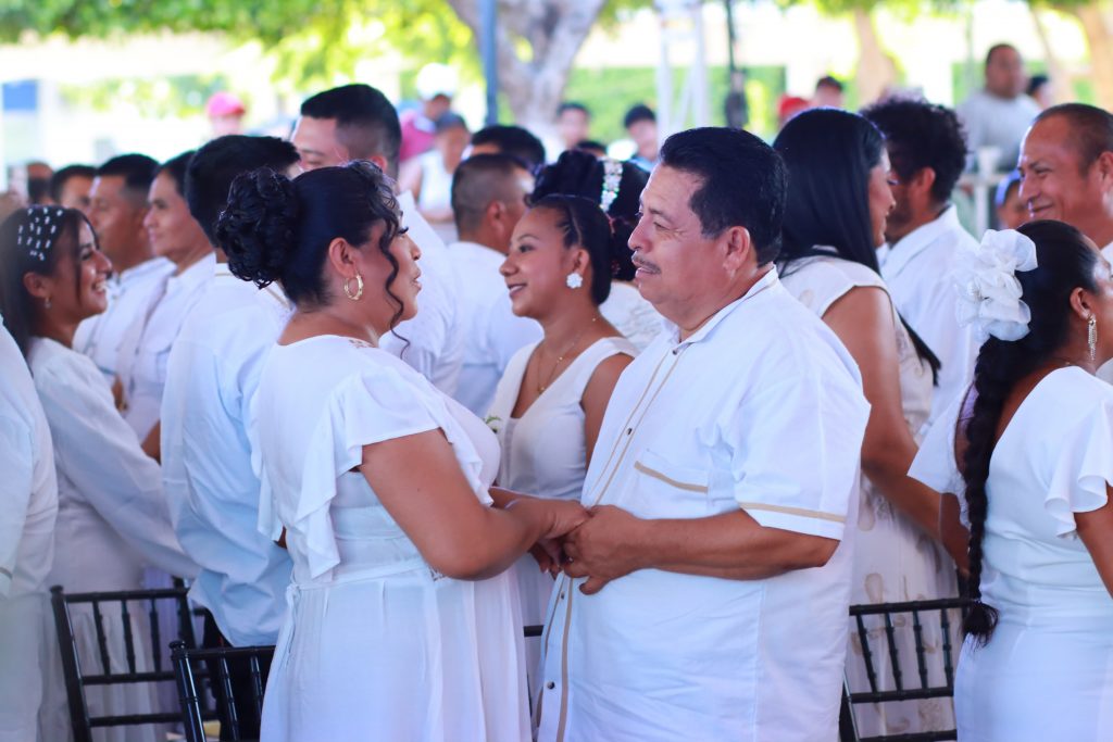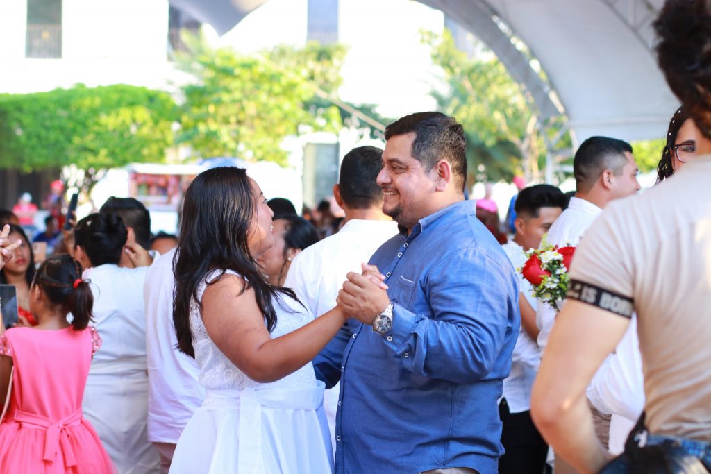Tremendo “pachangón” se vivió la tarde de este viernes en el Parque Central de Comalcalco, cuando 40 parejas participaron en la boda colectiva organizada por el Ayuntamiento presidido por Ovidio Peralta Suárez.