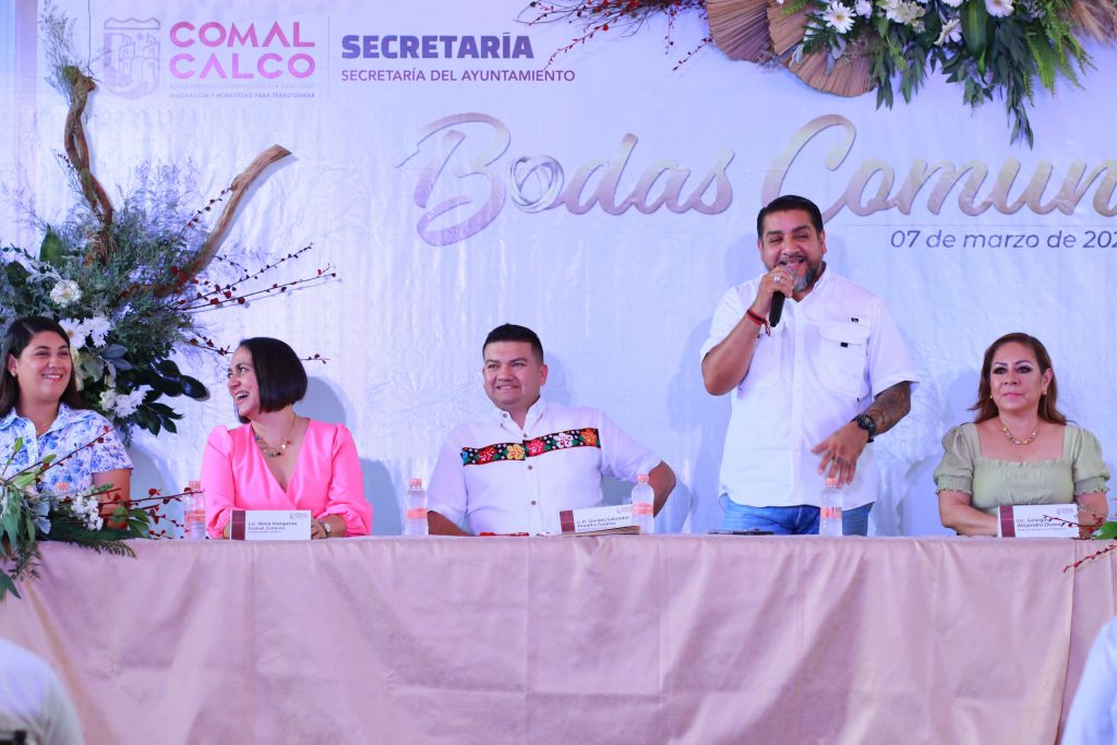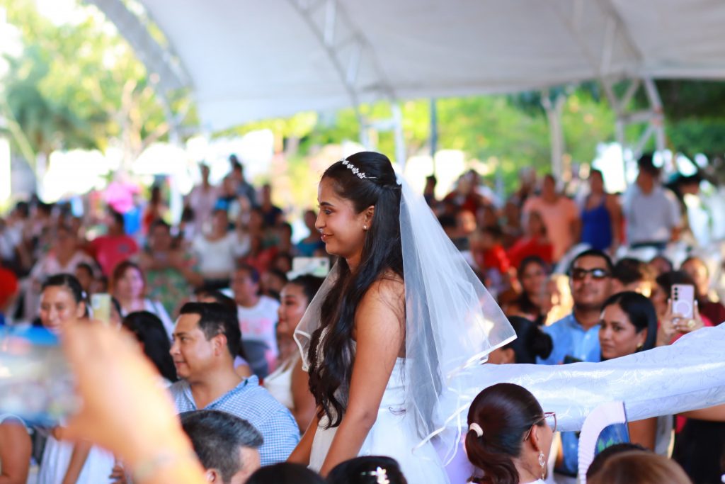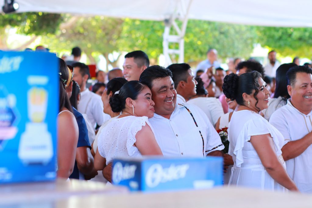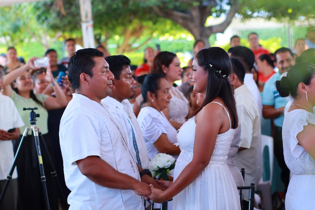Los novios, radiantes de felicidad, compartieron ese especial momento con sus seres queridos, quienes los acompañaron en este importante paso en sus vidas, mientras que el Ayuntamiento de Comalcalco se lució con los regalos.