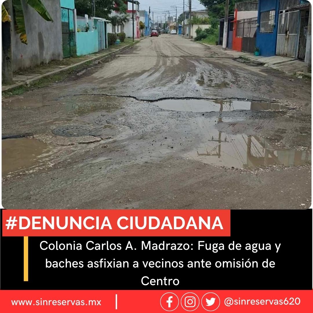 Colonia Carlos A. Madrazo: Fuga de agua y baches asfixian a vecinos ante omisión de Centro