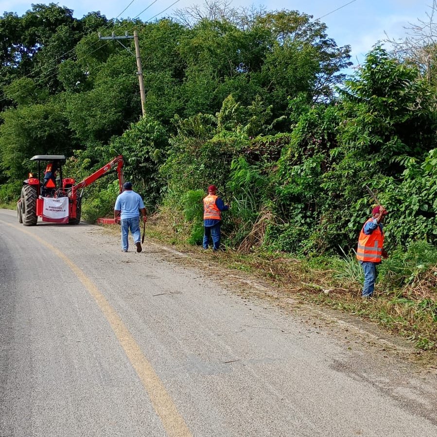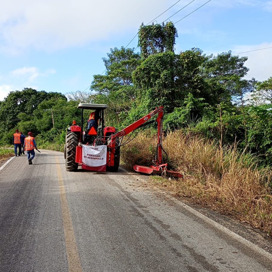 Personal del Ayuntamiento de Centro realiza chapeo y limpieza en la carretera Barrancas-Guanal Tintillo