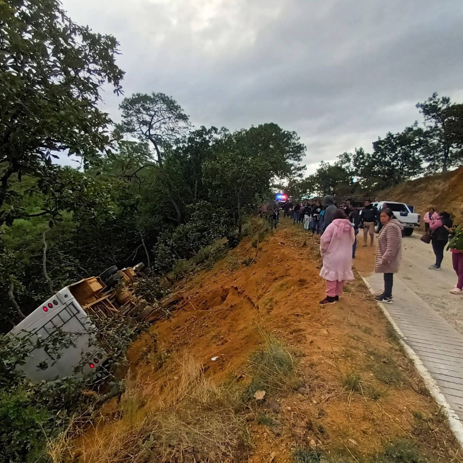 Oaxaca de Juárez, Oax. — La mañana de este lunes, un autobús de pasajeros que viajaba desde Santa María Peñoles con destino a la ciudad de Oaxaca volcó a la altura del paraje conocido como Río Cacho, en la carretera a San Felipe Tejalápam, dejando un saldo preliminar de 29 personas lesionadas, entre ellas tres menores de edad y una mujer embarazada.