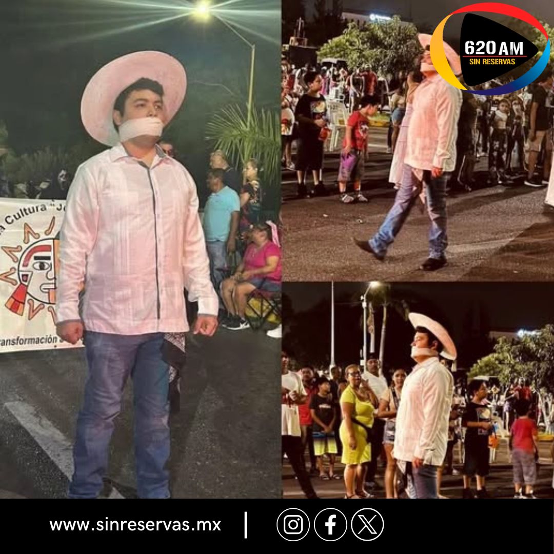El joven, que participaba en el recorrido escolar, portaba una caracterización que aludía al nombre mencionado y que muchos asistentes interpretaron como un mensaje simbólico sobre la censura y la libertad de expresión. La imagen se viralizó en redes sociales y desató opiniones encontradas entre vecinos, padres de familia y usuarios en internet.