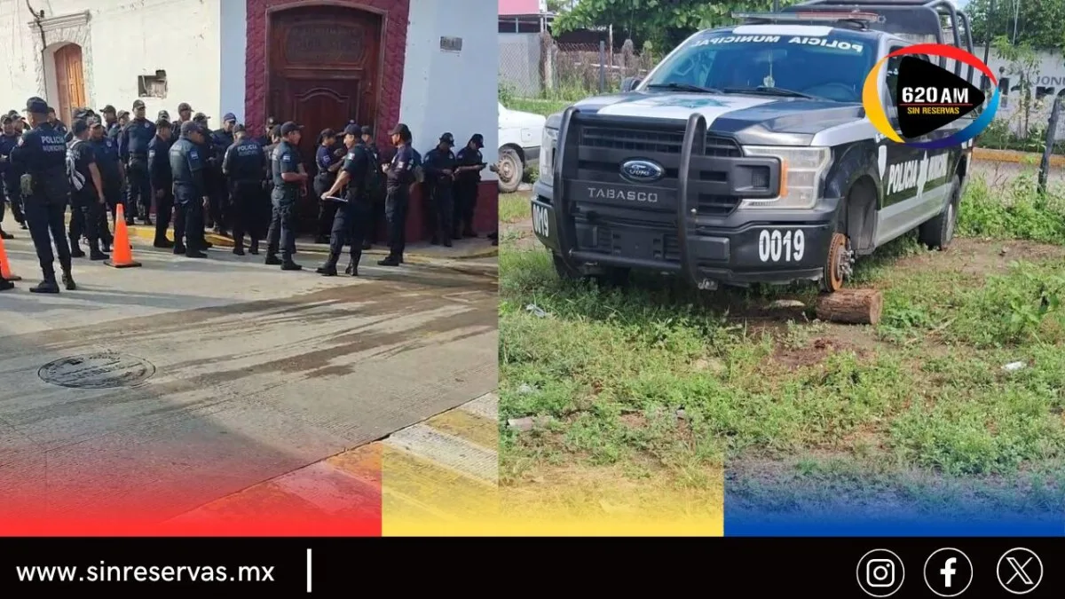 Elementos de la Dirección de Seguridad Pública Municipal de Jonuta tomaron las instalaciones del Palacio Municipal en protesta por las condiciones en las que aseguran desempeñan sus labores, señalando presunta negligencia por parte de la administración encabezada por María Soledad Villamayor Notario.