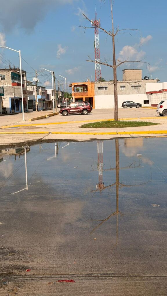 A pocos días de su inauguración, vecinos de la colonia El Castaño denunciaron que el polideportivo ya muestra afectaciones visibles, como agua estancada en mal estado y daños derivados de las inclemencias del tiempo, lo que ha generado inquietud sobre el mantenimiento, la calidad de la obra y su durabilidad a mediano plazo.