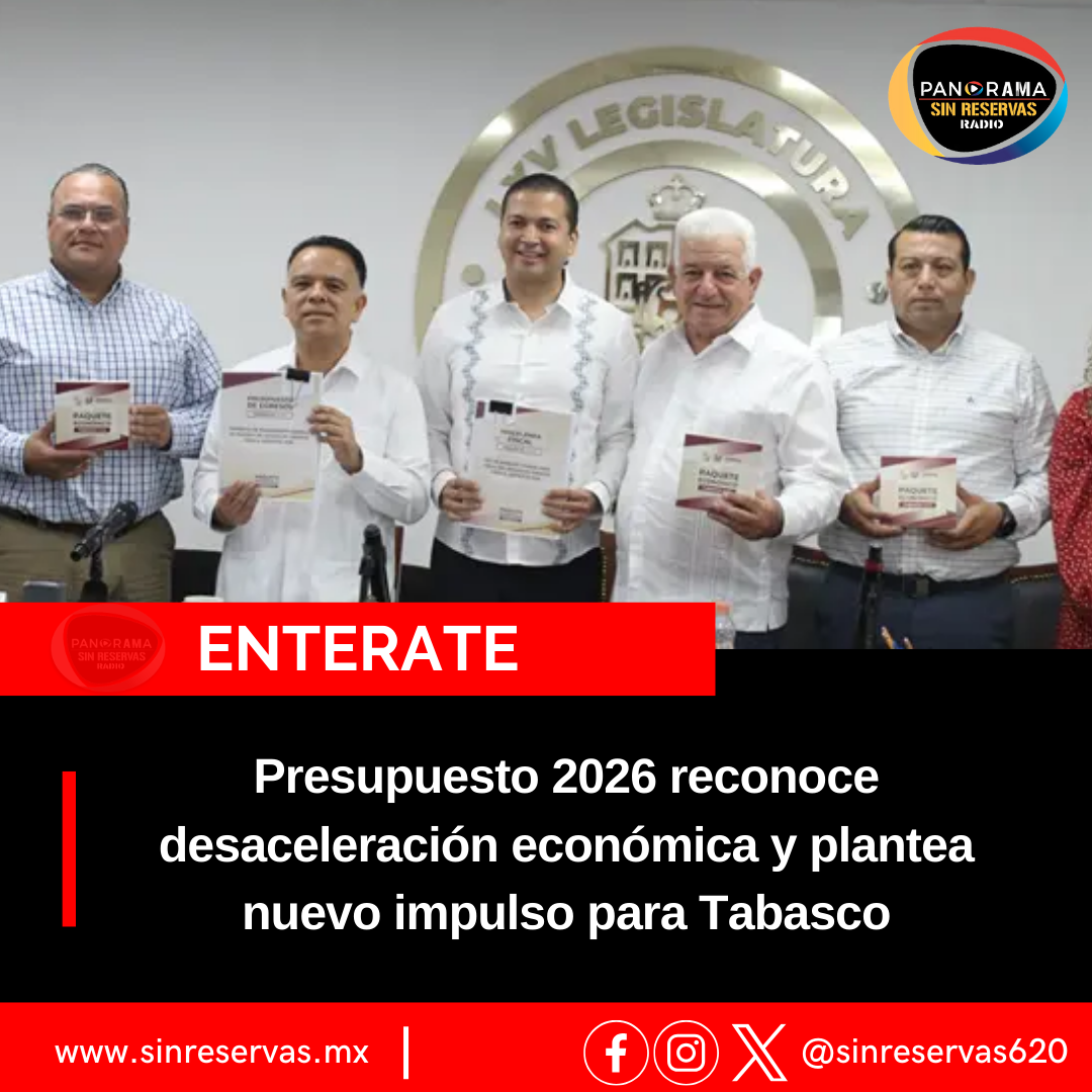 Presupuesto 2026 reconoce desaceleración económica y plantea nuevo impulso para Tabasco