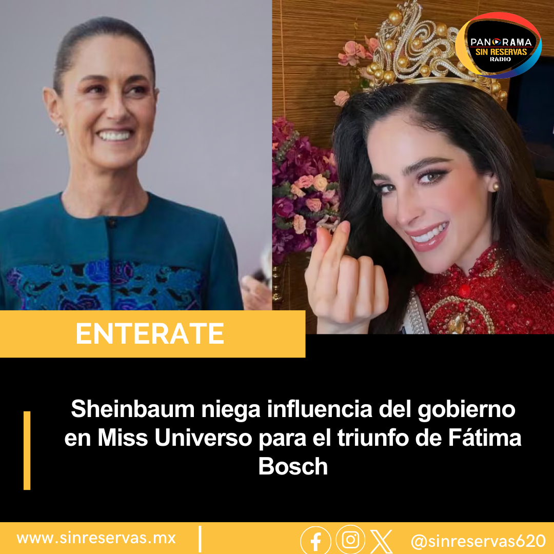 La presidenta de México, Claudia Sheinbaum, negó tajantemente este lunes que su gobierno haya intervenido en el certamen de Miss Universo 2025 para favorecer la coronación de la mexicana Fátima Bosch, como señalan versiones difundidas en redes sociales que acusan una supuesta “cortina de humo”.