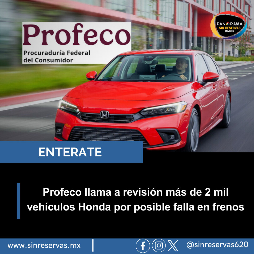 La Procuraduría Federal del Consumidor (Profeco) emitió un llamado a revisión para 2 mil 515 vehículos de la marca Honda en México, debido a una posible falla en el mecanismo del pedal de freno.