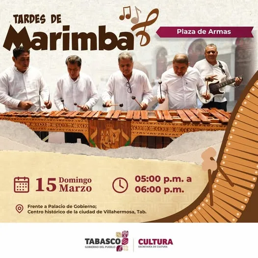 Durante esta jornada, familias y visitantes podrán disfrutar de una tarde llena de ritmo, alegría y tradición, donde la marimba se convierte en el puente que conecta generaciones y fortalece la identidad cultural tabasqueña.