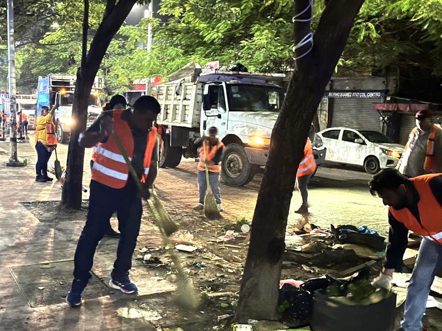 Desde las primeras horas de este jueves, personal de distintas áreas municipales llevó a cabo un operativo de limpieza y recolección de residuos sólidos en los alrededores del Mercado Pino Suárez, como parte de las acciones permanentes para la recuperación y ordenamiento de los espacios públicos.
