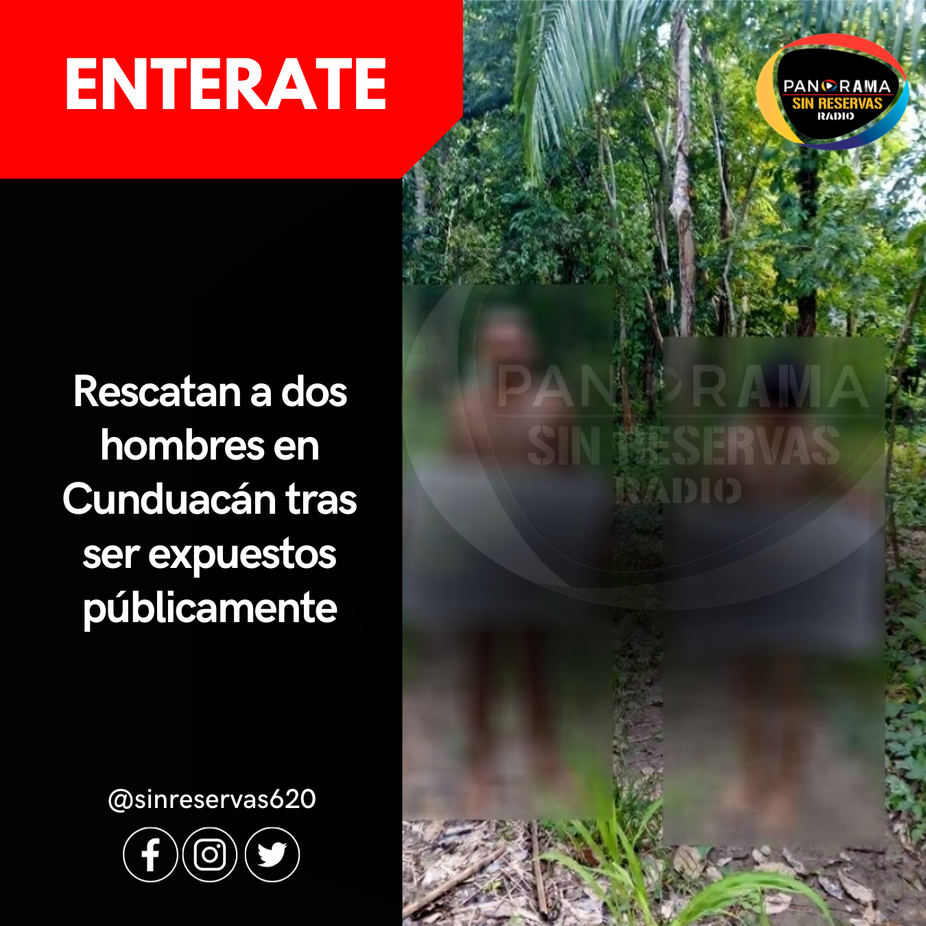 Esta tarde, dos hombres fueron bajados de una camioneta en el municipio de Cunduacán, desnudos y con cartulinas que señalaban: “Esto me pasó por robarle al Pueblo”. Además, presentaban signos de agresión física.