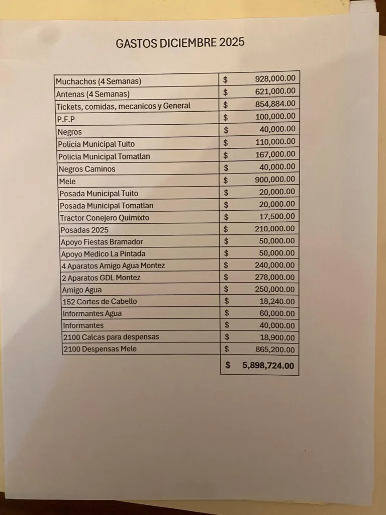 Uno de los reportes señala que en diciembre de 2025 se registraron ingresos por más de 8 millones de pesos en la zona de Tapalpa y áreas cercanas. No obstante, hasta el momento las autoridades no han confirmado oficialmente la autenticidad de los documentos ni han detallado avances en la investigación.