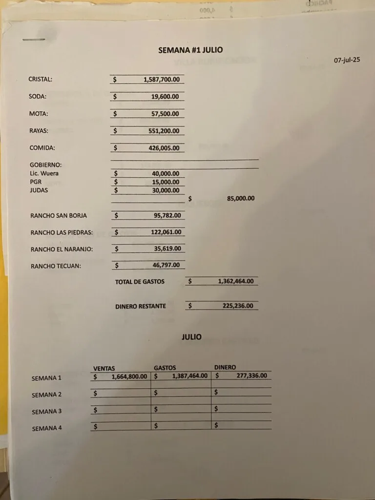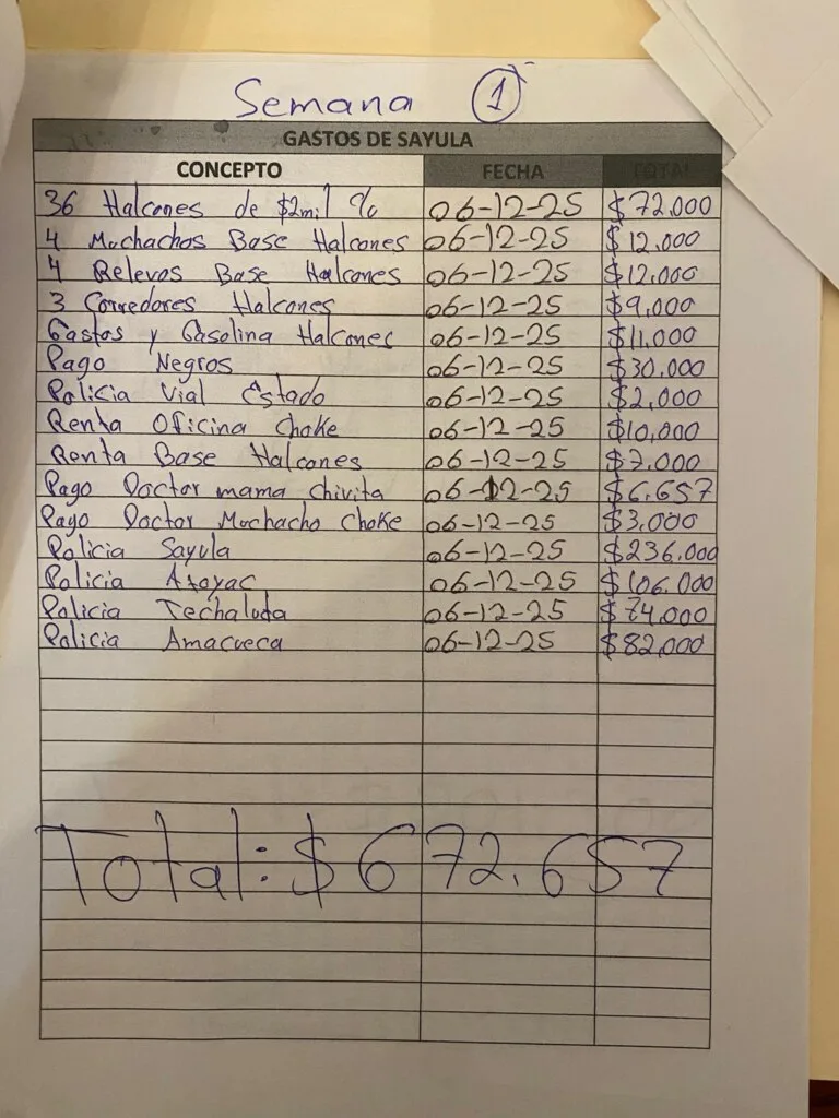 Entre los datos que más han llamado la atención se encuentran anotaciones relacionadas con supuestos pagos a autoridades locales, lo que ha generado polémica y preocupación en la opinión pública. Los documentos también incluirían listas mensuales de sueldos y controles internos por región.