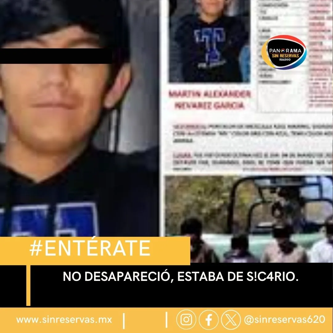 Un adolescente que había sido reportado como desaparecido el pasado 10 de marzo en el estado de Durango fue localizado en el municipio de Elota, Sinaloa, donde además fue detenido por su presunta participación en un grupo criminal armado.