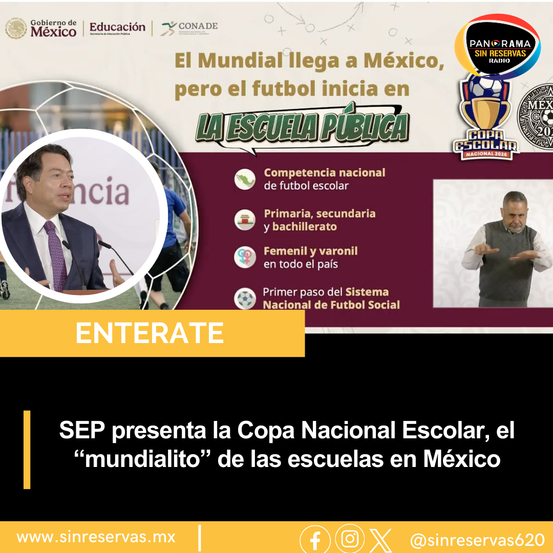 El titular de la Secretaría de Educación Pública (SEP), Mario Delgado, presentó la Copa Nacional Escolar, una competencia nacional de futbol dirigida a estudiantes de nivel primaria, secundaria y bachillerato de todo el país.