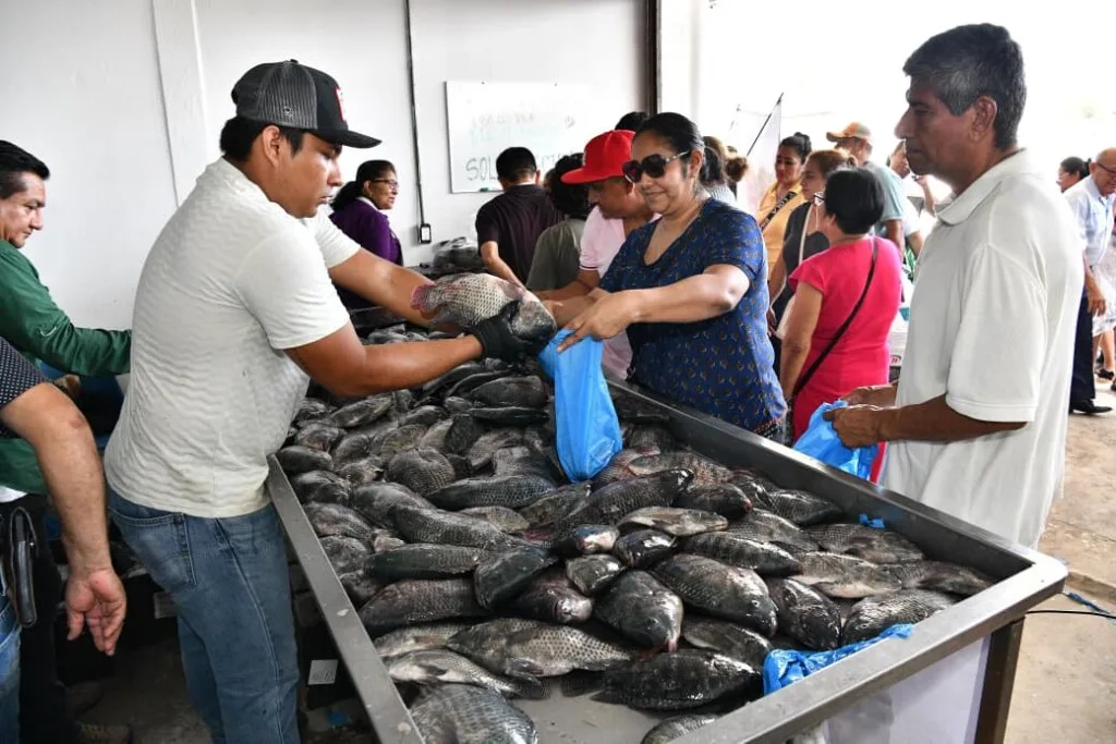 “Vengo desde Macuspana porque anunciaron que los productores de Pescando Vida vendería su producto en la cuaresma. Y estoy viendo que el pescado está muy bonito, muy fresco”, adelantó cuando ya estaba frente a la barra con tilapias y sacos de ostión exhibidos.