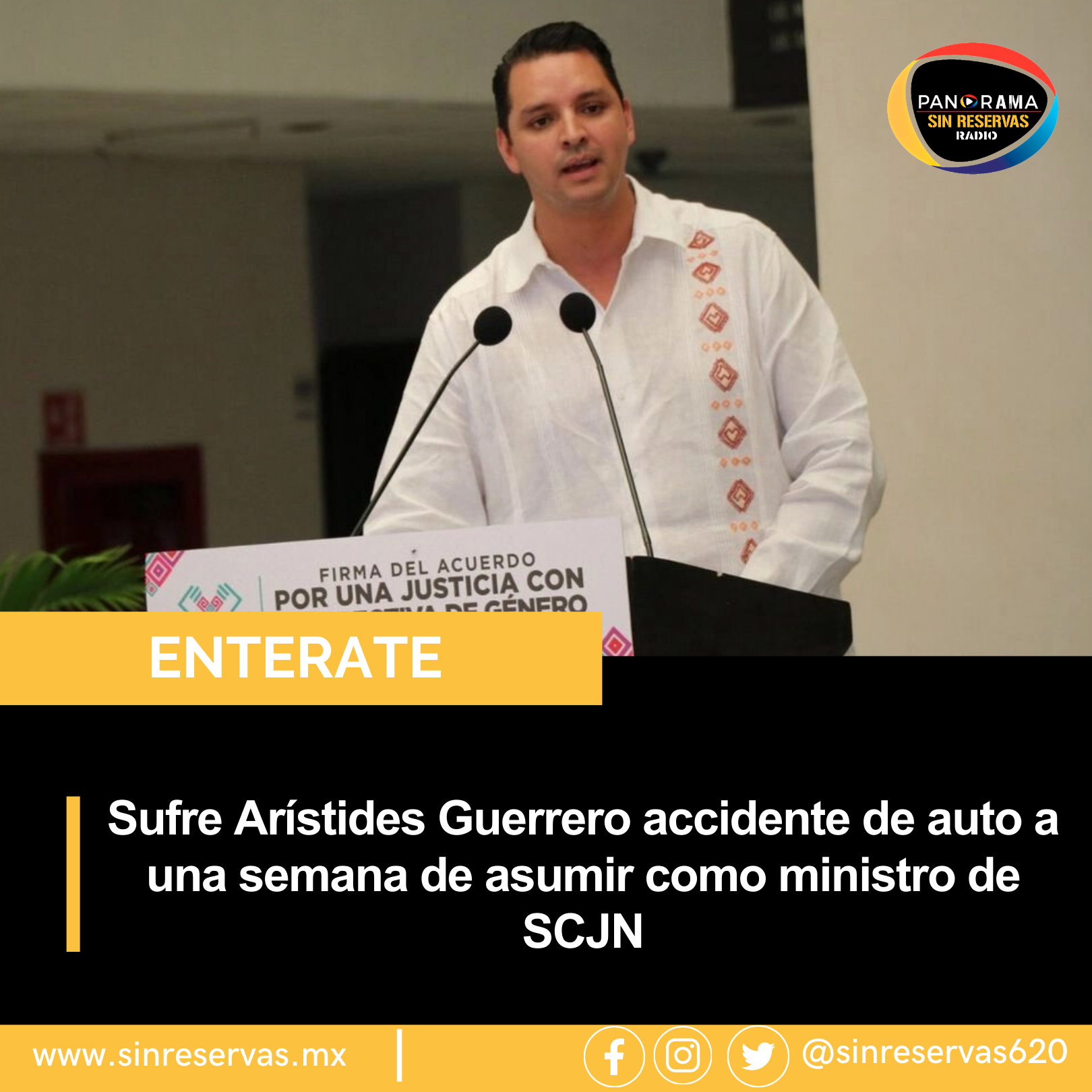 Ciudad de México. Arístides Guerrero García, ministro electo de la Suprema Corte de Justicia de la Nación (SCJN), sufrió la noche del viernes un accidente automovilístico en Río Churubusco, Ciudad de México, mientras regresaba del Aeropuerto Internacional tras participar en un evento de la Fiscalía de Oaxaca.