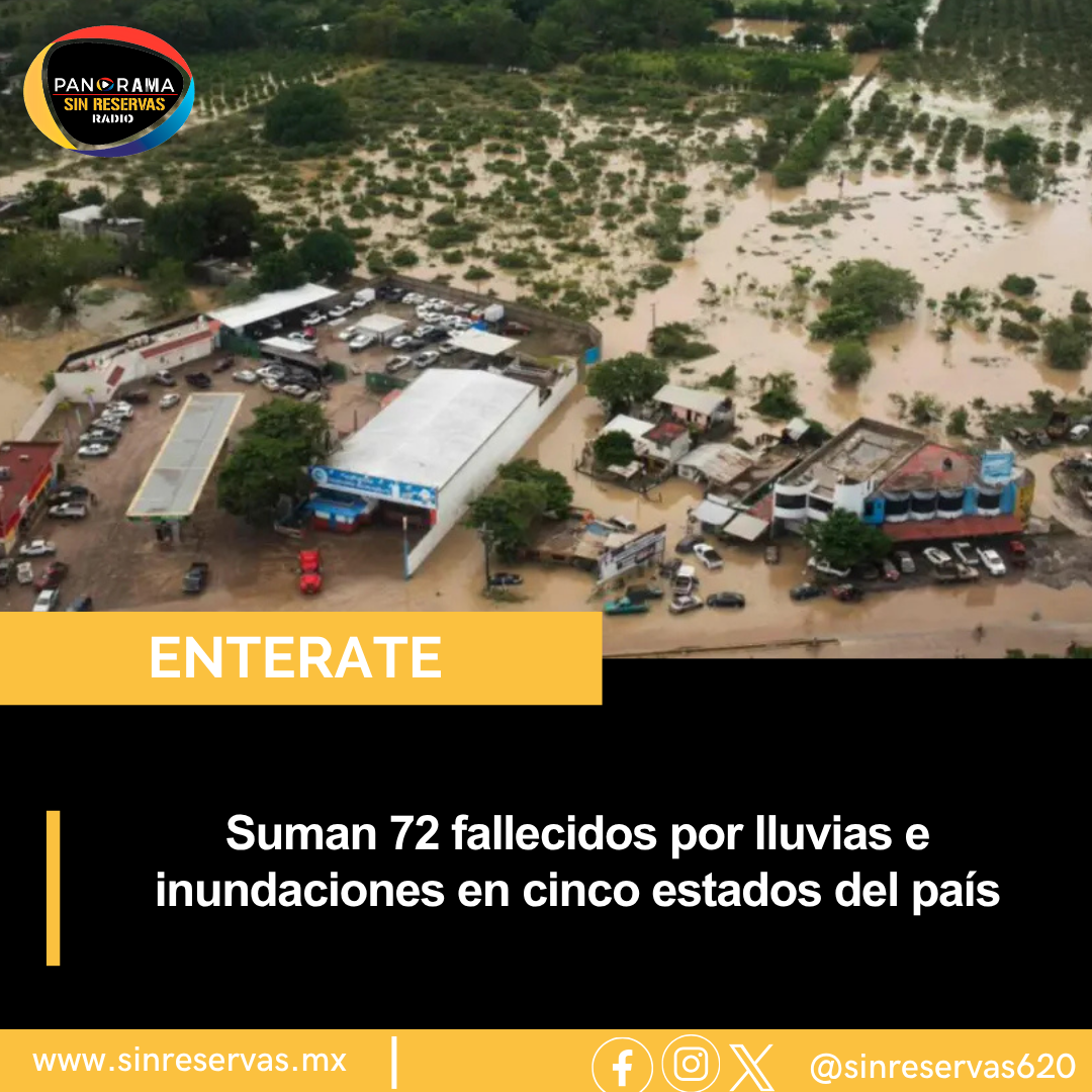 La cifra de personas fallecidas a causa de las intensas lluvias e inundaciones registradas en cinco estados del país aumentó de 70 a 72, según datos actualizados del micrositio del gobierno federal “Afectaciones por lluvias e inundaciones”.