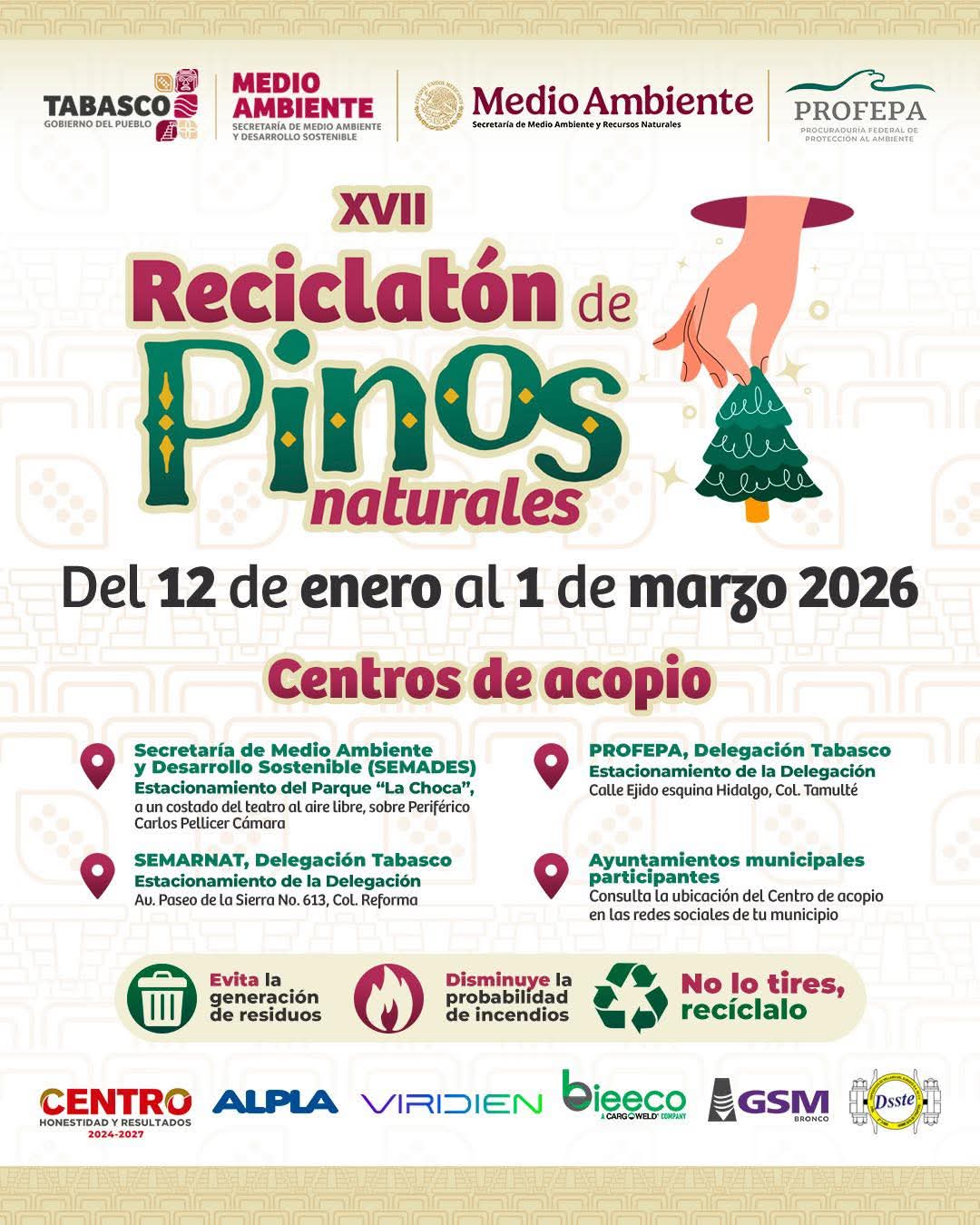 Con el objetivo de fomentar el cuidado del medio ambiente y promover prácticas sustentables, el Ayuntamiento invita a la ciudadanía a participar en el XVII Reciclatón de Pinos Naturales, una iniciativa que permite dar un destino adecuado a los árboles navideños naturales una vez concluida la temporada decembrina.