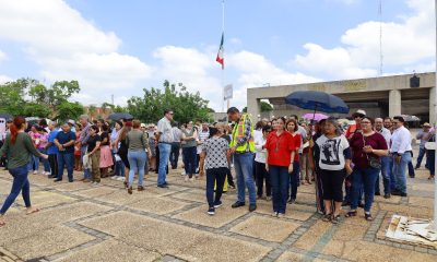 Los servidores públicos que laboran en el inmueble de Palacio Municipal, encabezados por la alcaldesa Aura Medina Cano, al igual que los visitantes, participan con orden...