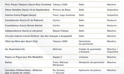 El Ayuntamiento de Centro informó que continúa realizando trabajos diarios de mantenimiento y modernización de la infraestructura vial, con el objetivo de mejorar la movilidad en...
