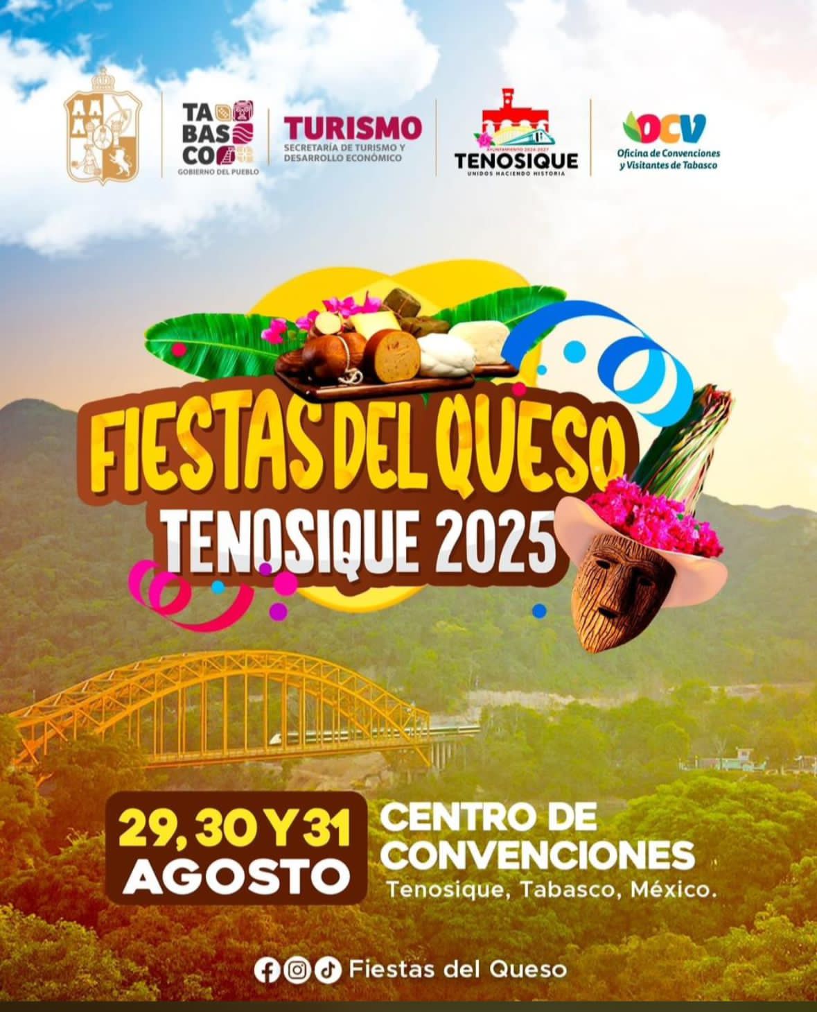 Con el apoyo del Gobierno de Tabasco, la presidenta de Tenosique, Sandra Beatriz Hernández Jiménez, anunció que todo está listo para recibir, del 29 al 31 de agosto, a miles de visitantes que disfrutarán de Las Fiestas del Queso 2025, a realizarse en el Centro de Convenciones.