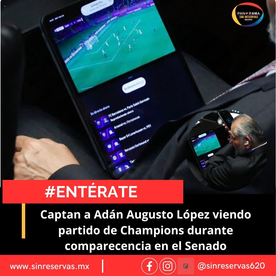 Captan a Adán Augusto López viendo partido de Champions durante comparecencia en el Senado