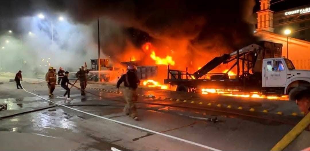 El tráiler se impactó violentamente contra maquinaria pesada, una pipa y varios volquetes estacionados en la zona de obra. El choque fue tan fuerte que todas las unidades involucradas estallaron en llamas, generando un incendio de gran magnitud que pudo observarse desde distintos puntos de la ciudad.