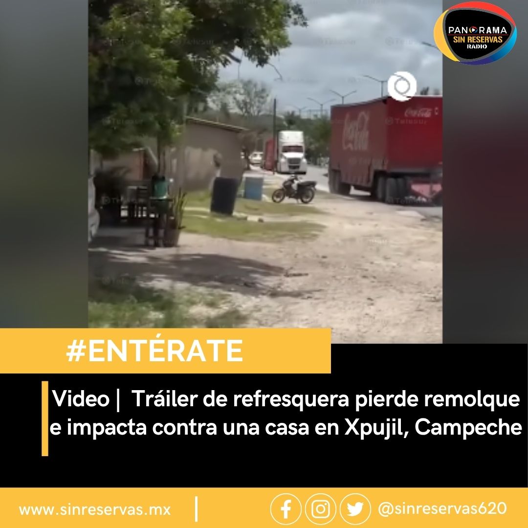 Momentos de tensión se vivieron en Xpujil, Campeche, cuando un tráiler perteneciente a una empresa refresquera perdió el control y se desprendió de su remolque, terminando impactado contra una vivienda.