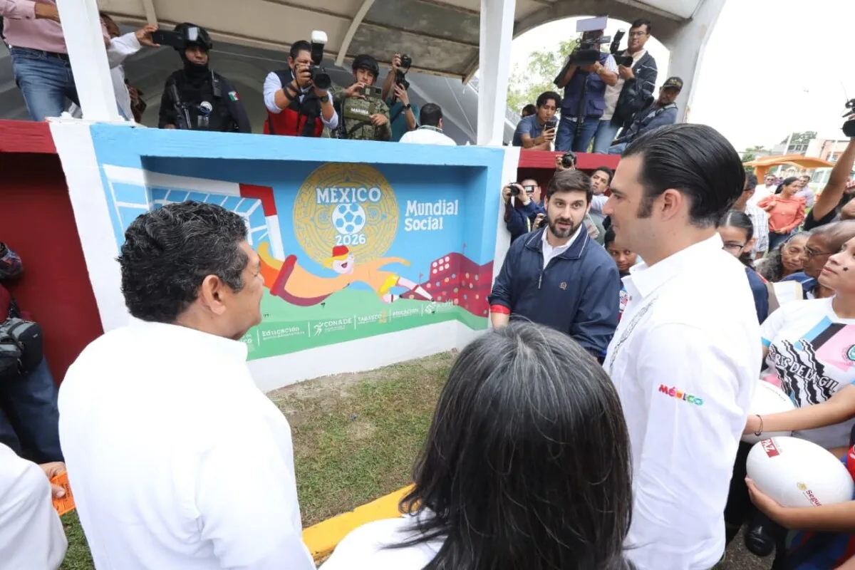 Crónica: Gobernador Javier May Rodríguez “dispara” a gol y recibe el símbolo de la paz en Jornada realizada en colonia Indeco dirigida a recuperar espacios públicos y fortalecer el tejido social