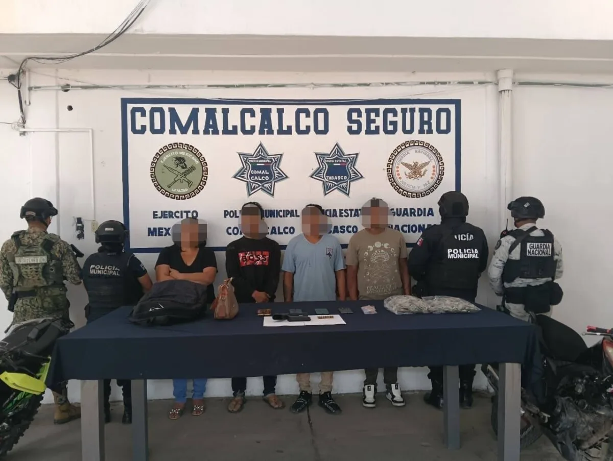 Tres hombres y una mujer detenidos en Comalcalco con drogas y arma