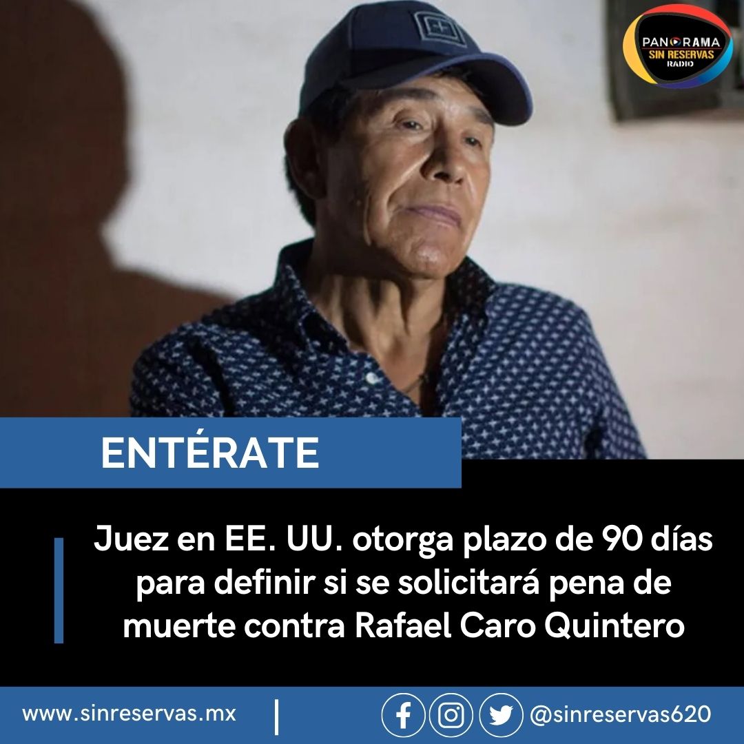 Un juez de la Corte del Distrito Este en Brooklyn, Nueva York, ha otorgado un plazo de 90 días a la Fiscalía de EE. UU. para decidir si solicitará la pena de muerte contra Rafael Caro Quintero, cofundador del Cártel de Guadalajara. Caro Quintero, quien fue detenido en 2022 tras años de huida, enfrenta cargos por múltiples delitos graves, incluido su involucramiento en el asesinato del agente de la DEA, Enrique “Kiki” Camarena, en 1985.