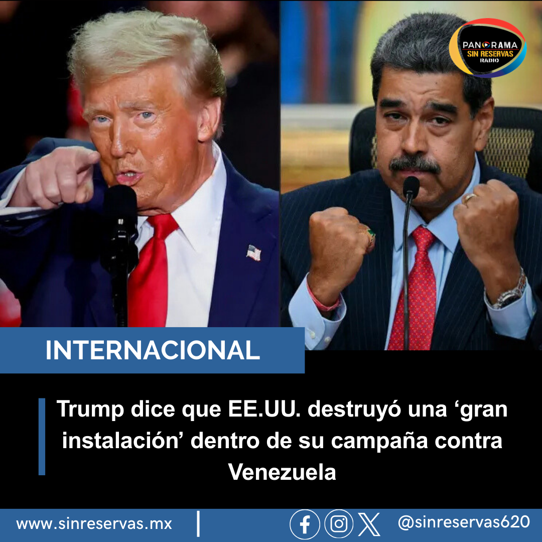 El presidente de Estados Unidos, Donald Trump, afirmó que su país destruyó la semana pasada una “gran instalación” como parte de su campaña contra una red de narcotráfico que, según Washington, es encabezada por Venezuela, aunque no precisó si la acción ocurrió dentro del territorio venezolano.