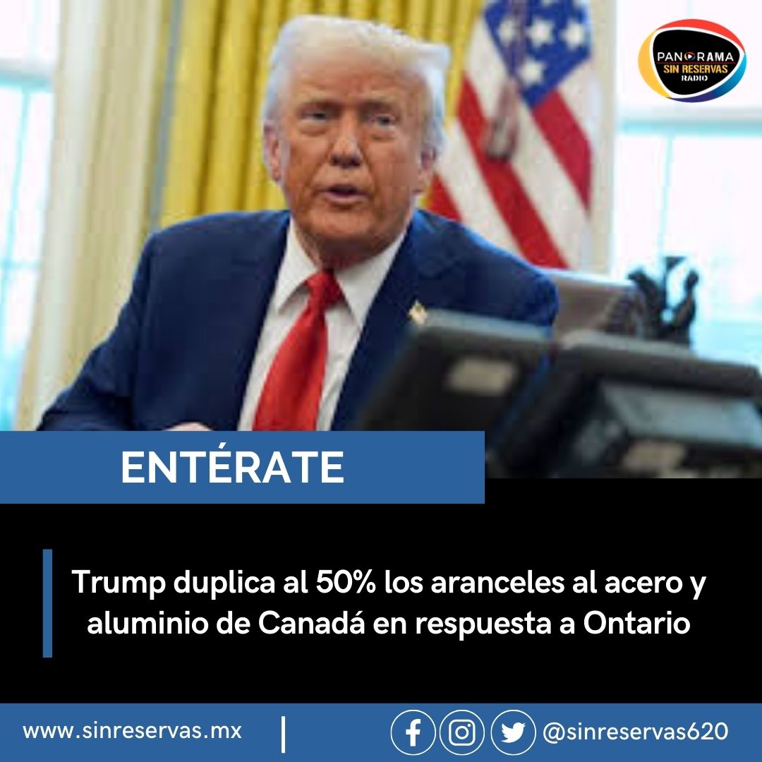 El presidente de Estados Unidos, Donald Trump, anunció la duplicación de los aranceles al acero y aluminio provenientes de Canadá, elevándolos del 25% al 50% a partir del miércoles.